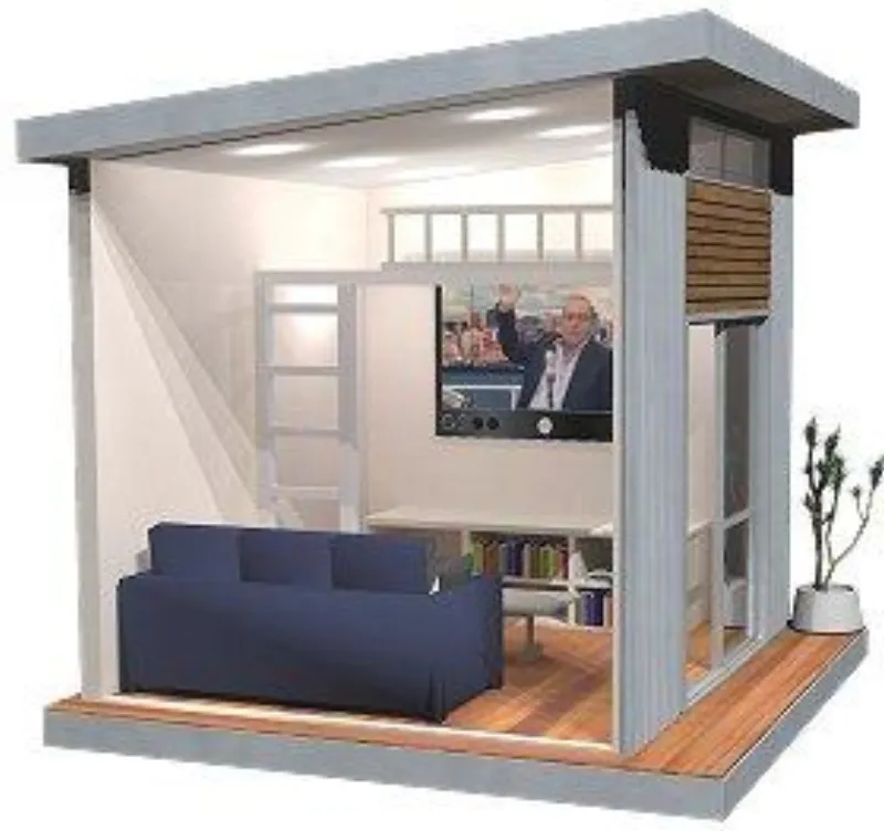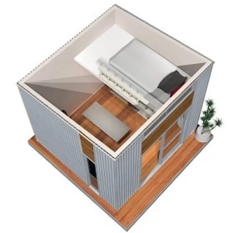 The loft area, ideal for sleeping or storage, makes the City House the ultimate student sleepout or garden office.